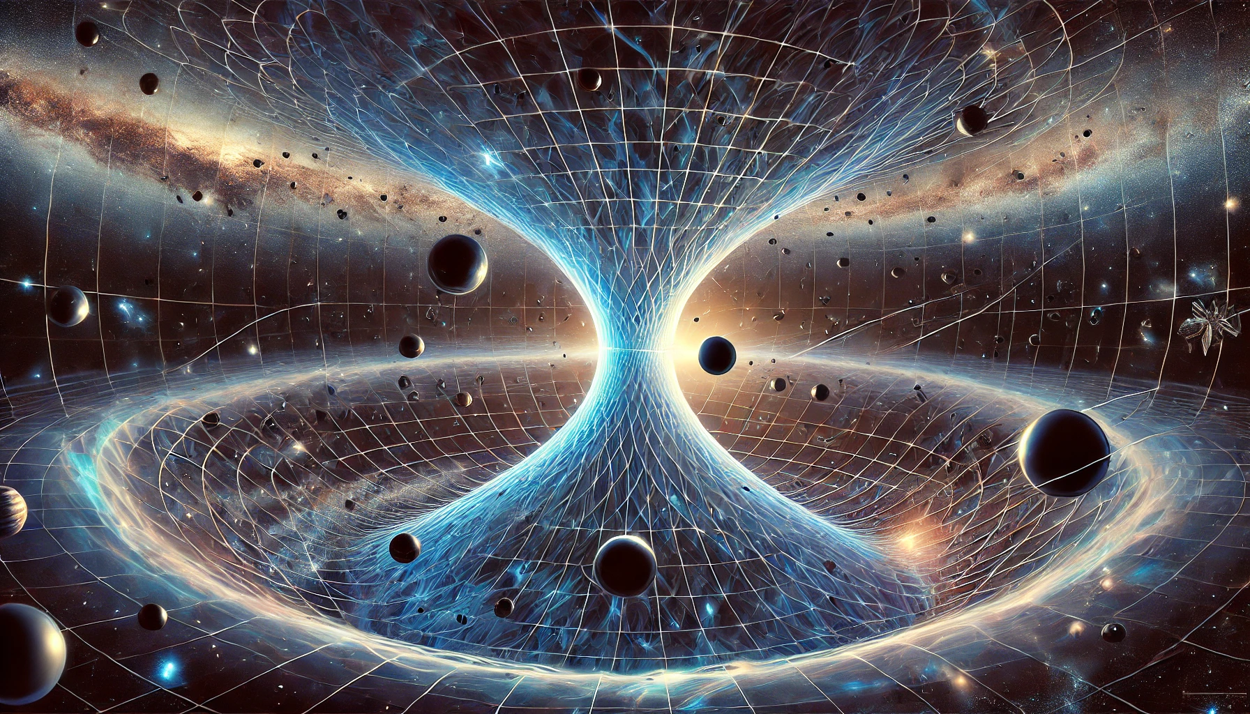 Gravitationswellen sind Veränderungen der Raumzeit, die durch die Bewegung massiver Himmelskörper wie Neutronensterne und Schwarze Löcher verursacht werden. Sie bewegen sich mit Lichtgeschwindigkeit und beeinflussen sowohl die Länge als auch die Richtung von Entfernungen im Weltraum.